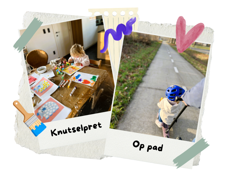 Sinds eind november doet ze geen namiddagdutje meer, dus we proberen meteen volledige dagen. Lukt dat niet, dan schakelen we bij.