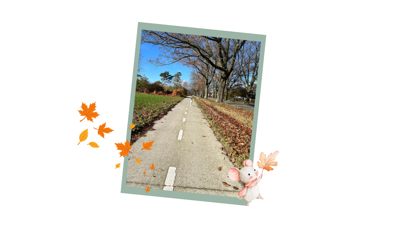 Op de foto zie je onze dochter, nu twee jaar en vier maanden oud, in de verte. Ze groeit zo snel, binnenkort gaat ze al naar school. Het moederschap voelt als een voortdurend proces van loslaten: telkens een beetje meer ruimte geven, telkens een beetje meer bewonderen hoe ze haar eigen weg vindt. Op de achtergrond zie je de bomen die hun bladeren laten vallen, een mooi spiegelbeeld van die verandering, van loslaten en verder groeien.
